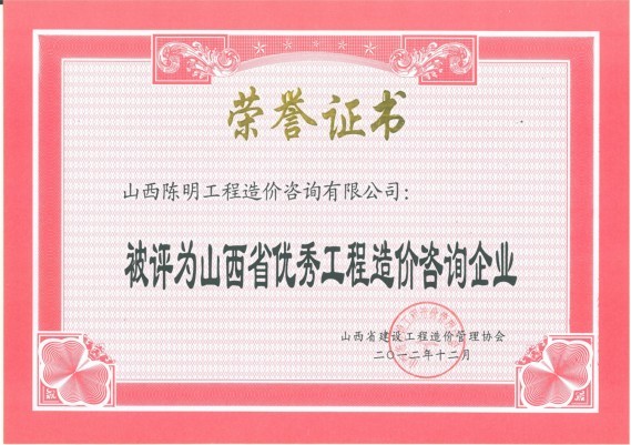 優(yōu)秀工程造價(jià)咨詢企業(yè)